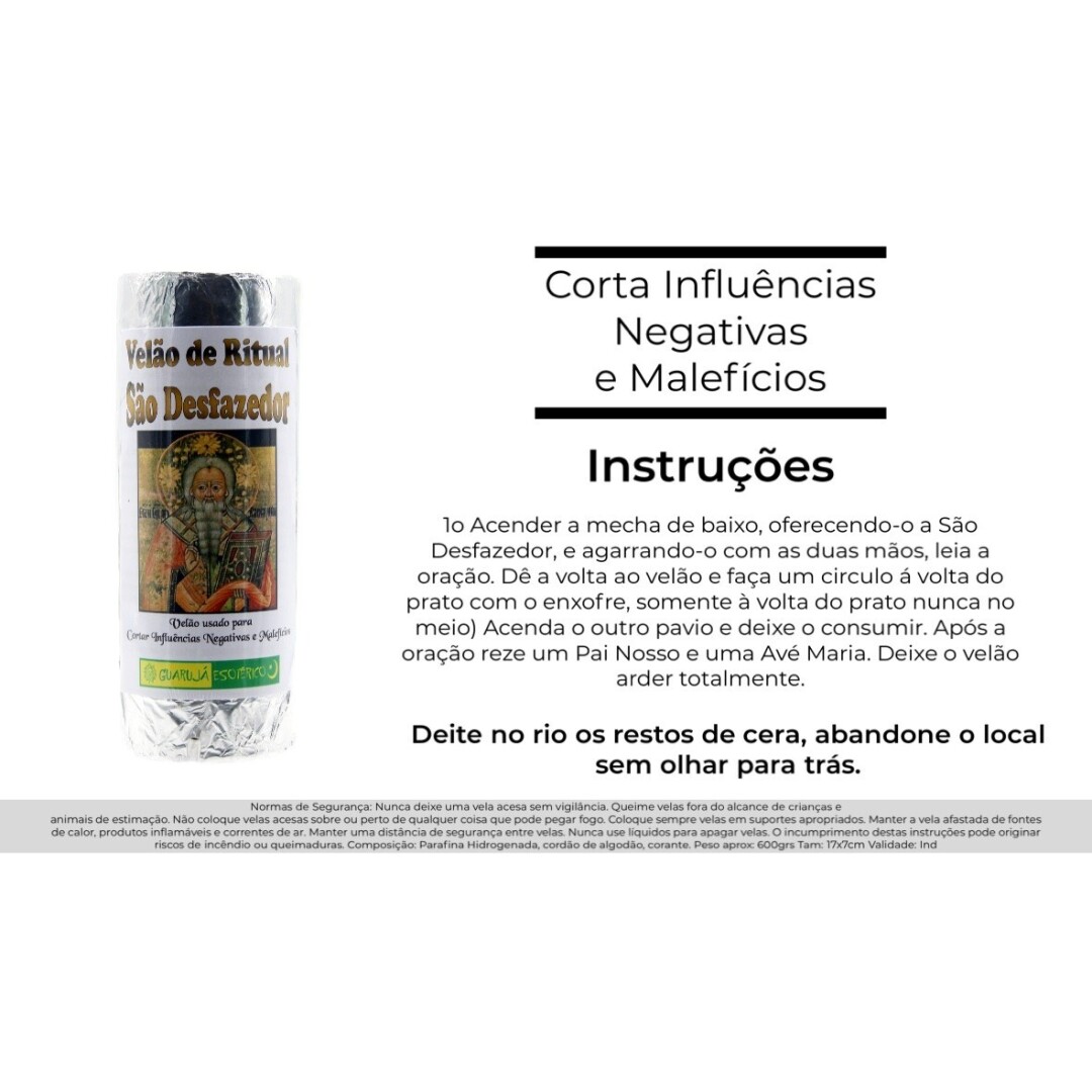 Home Velão dos Rituais Velão São Desfazedor Velão São Desfazedor SKU: 36069 11,95 € Desconto de %. Comprar Contactar Adicionar à wishlist Velão usado para cortar influências negativas e malefícios. 17x7 cm. Partilhar